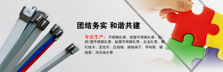 樂清迎發(fā)電纜附件有限公司專業(yè)生產(chǎn)不銹鋼扎帶、噴塑不銹鋼扎帶、包(擠)塑不銹鋼扎帶、粘塑不銹鋼扎帶、尼龍?jiān)鷰、鋼釘線卡、定位...